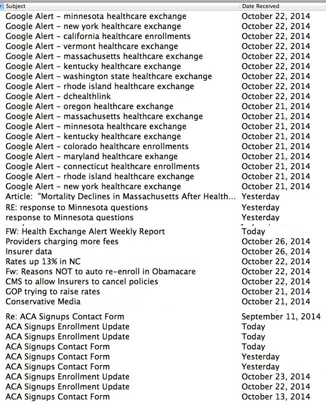 As I noted this morning, between the impending election on Tuesday, the upcoming 2nd Open Enrollment Period (henceforth to be designated "OE2" or hashtag #OE2), and a serious technical crisis with my day job which I've had to spend the past few days cleaning up, I have upwards of 150 ACA/Obamacare-related emails clogging up my In Box.