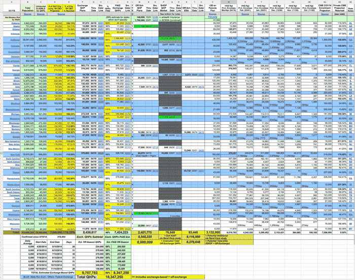The state-level spreadsheet is no different from my own 2014 spreadsheet, except that it also includes an updated estimate of the potentialpool of QHP enrollees within each state.