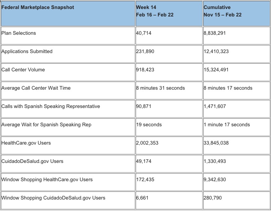 I actually wasn't expecting this to be announced formally until the next "weekly snapshot" report this Wednesday, but being past the official 2/15 deadline anyway and with 3 of the state exchanges already having made their announcement, I guess HHS/CMS figured there was no point in holding off.