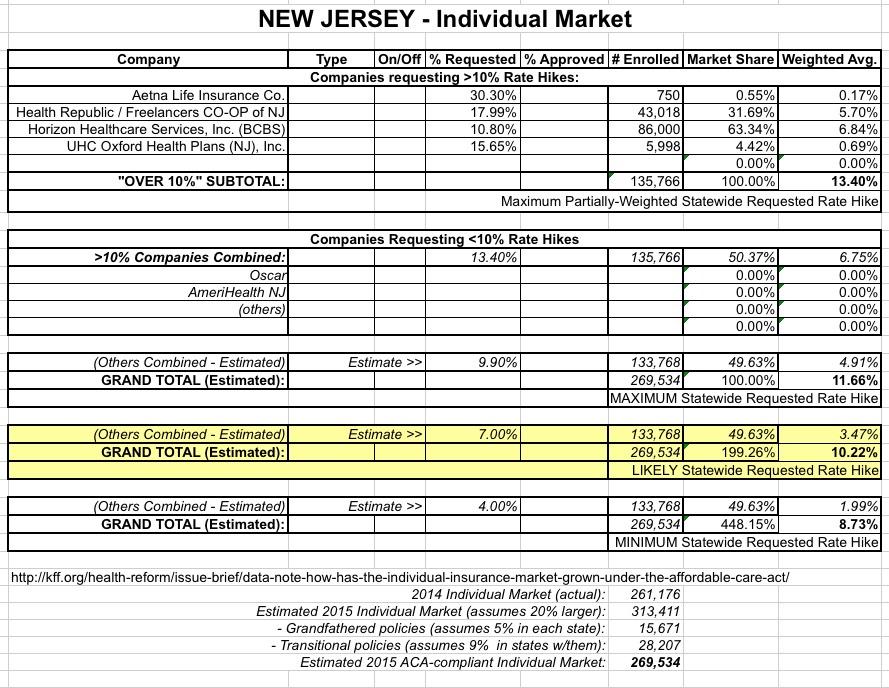 Assuming you've read through the explanation linked to above, here's my best estimate of the maximum possible and most likely average rate increase requests for the New Jersey individual market: