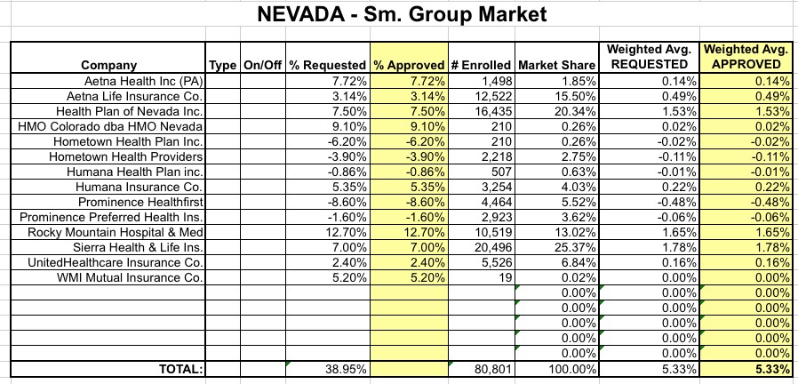 The requested rates were approved for 8 of the companies, but were reduced significantly for Aetna (from 21-24% down to 15%). Here's what it looks like in the end:
