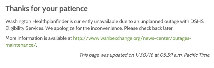 Well, it's around 7pm EST on Sunday, 1/31/16. As of this writing, HealthCare.Gov is loading quickly, as are all 13 of the state-based exchange websites. Aside from a "high call volume" message at Covered California and "extended call center hour" messages from CoveredCA and various other SBMs, I'm not seeing any evidence of website server load strain, etc.