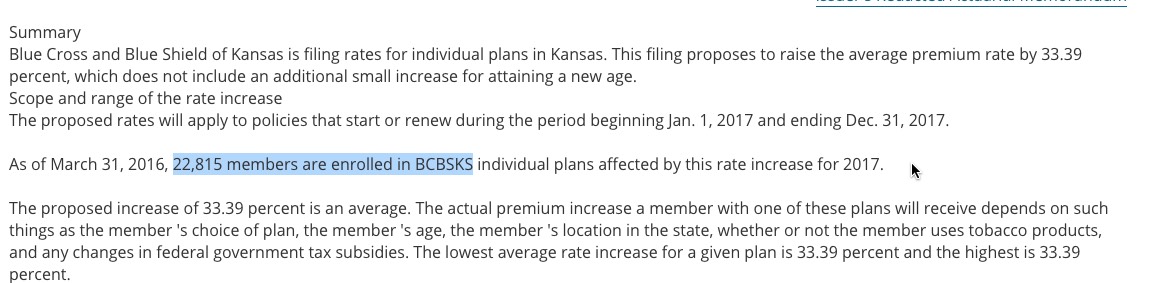 OK, so 3 major carriers asking to jack up rates 15-24%, plus one at 8.5% and two others with just 7 enrollees between them (one of which is, once again, Freedom Life Insurance). So what?