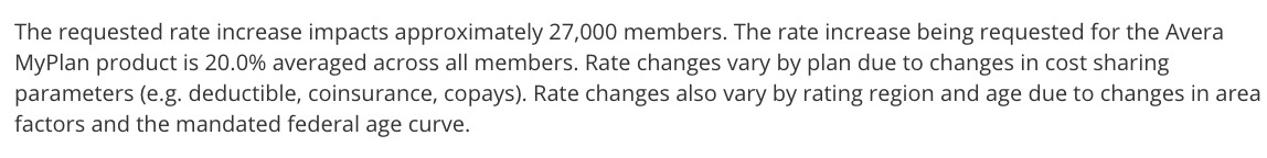 Interestingly, while Medica's rate filing letter clearly states that the 16.9% request assumes CSR payments will be made and the mandate will be enforced, they also list "unprecedented uncertainty/risk inherent in the marketplace" as one of the key drivers of the increase.