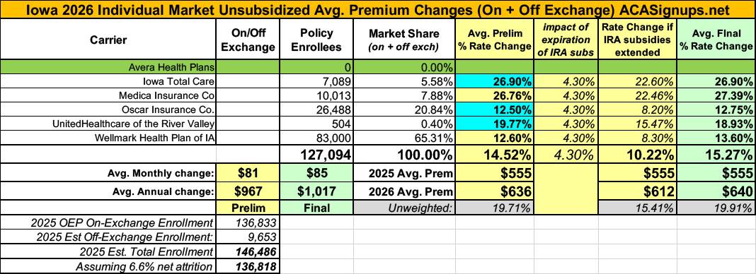 In Iowa specifically, all of this will result in average gross premiums hikes of 15.3%.