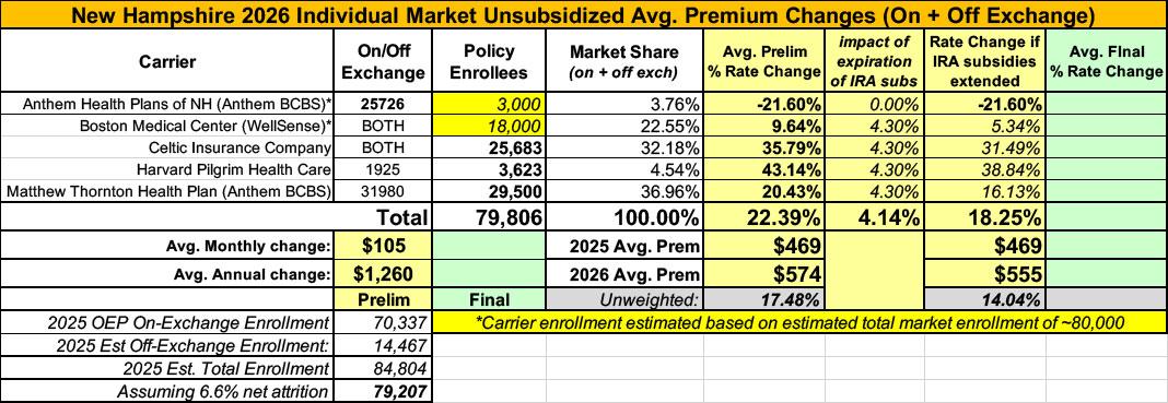 2026 Final Gross Rate Changes - New Hampshire: +17.3%; ~80,000 enrollees facing MASSIVE rate hikes starting in January (updated)