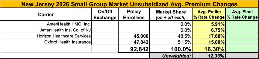 UPDATE 8/28/25: According to the New Jersey Dept. of Banking & Insurance, Amerihealth has bumped up their preliminary request by 2 points, which in turn raises the weighted average by one point to 15.9% (I actually have it down as 15.5% but whatever...)