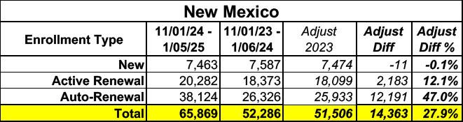 Not only is New Mexico's exchange enrollment up a whopping 28% vs. the same point last year, it's 20% higher than the 2024 OEP's final total of 56,472.
